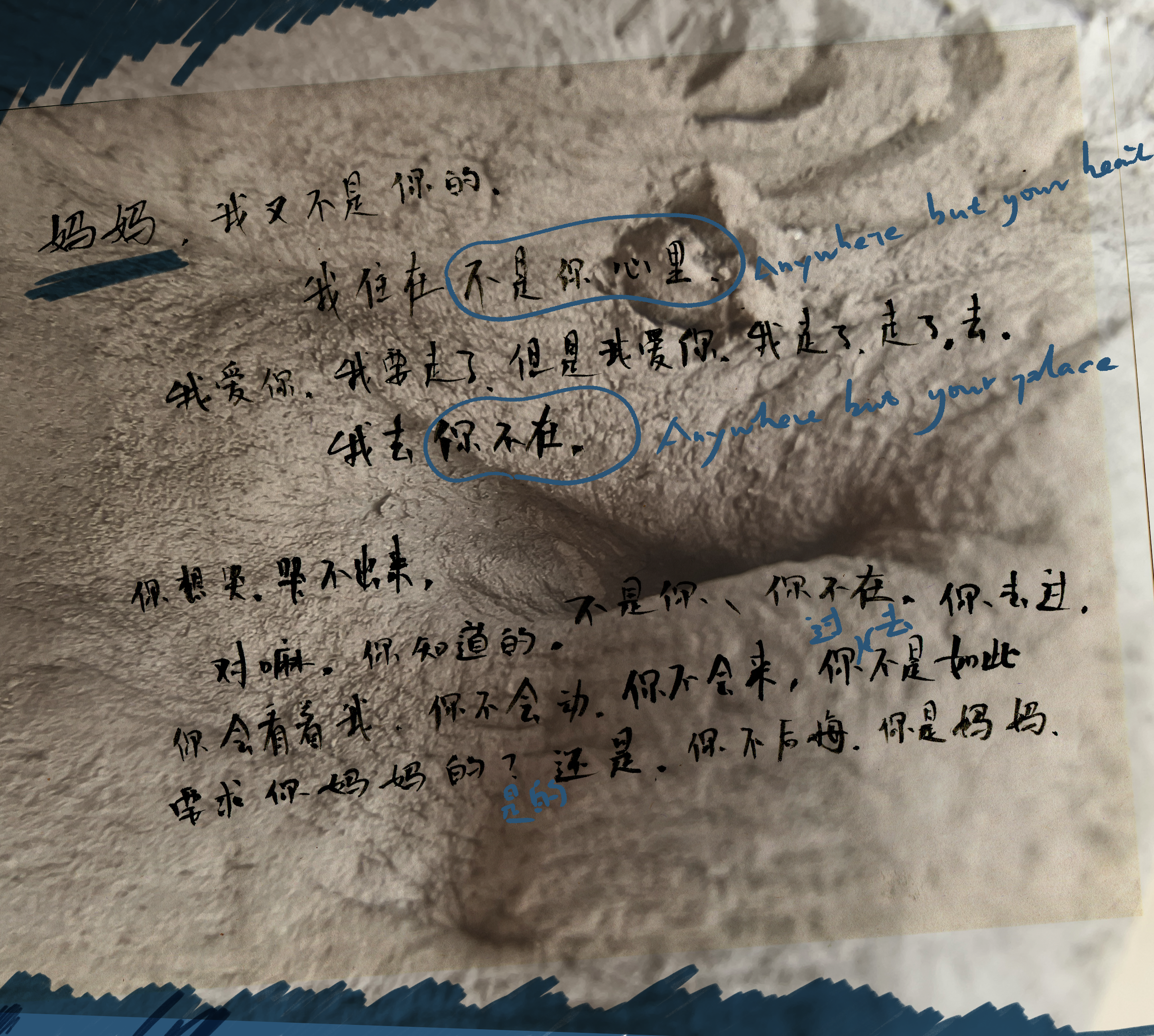 A single sentence from my daughter during a family trip serves as an insightful observation about “becoming a mother.” “I don’t live in your heart,” she said with a laugh, leaving her mother speechless. Throughout our travels, this thought had weighed heavily on her mind, and finally, during a walk in the park, she chose to express it by writing the words on stones, pine cones, fallen leaves, and tree trunks along the path.