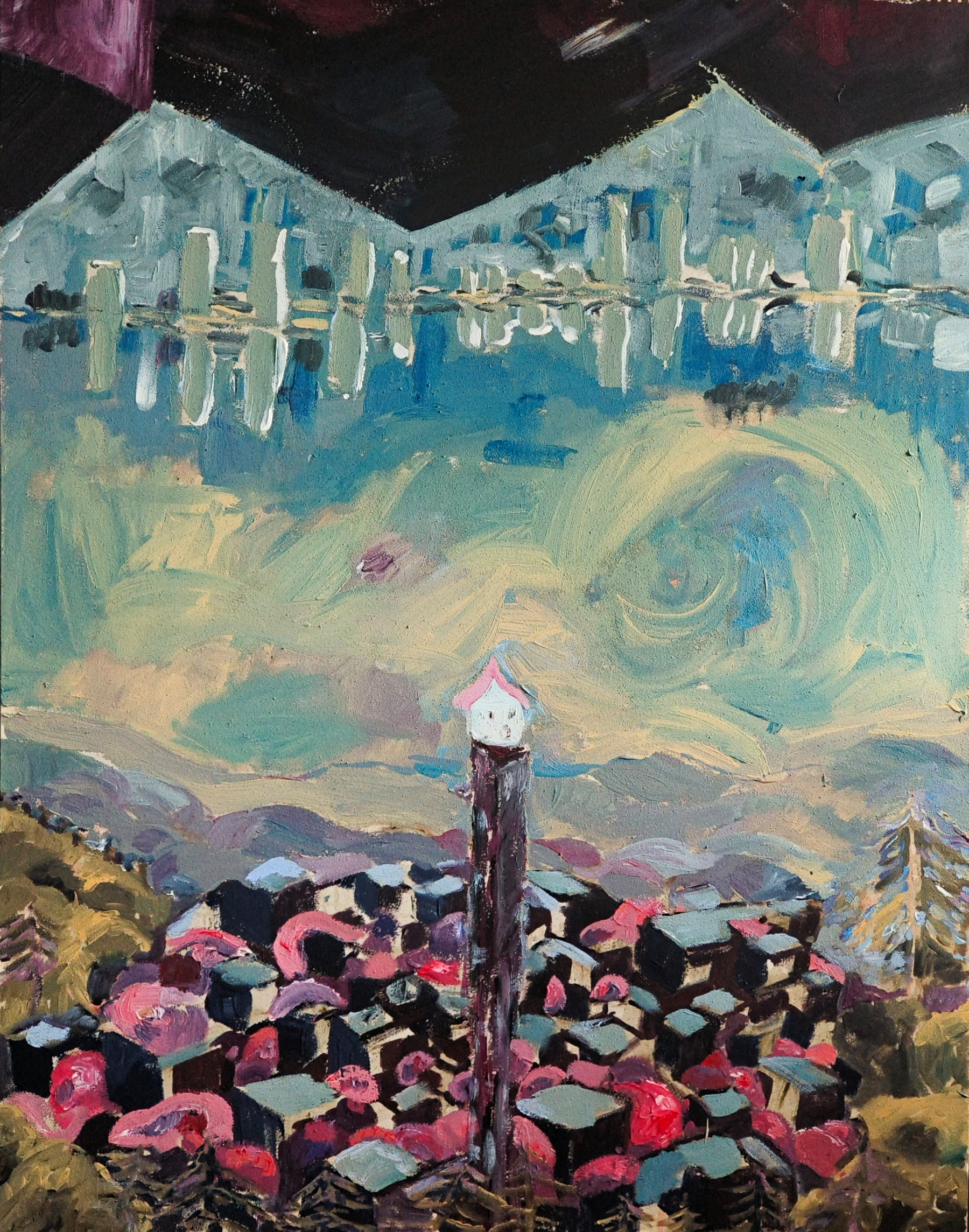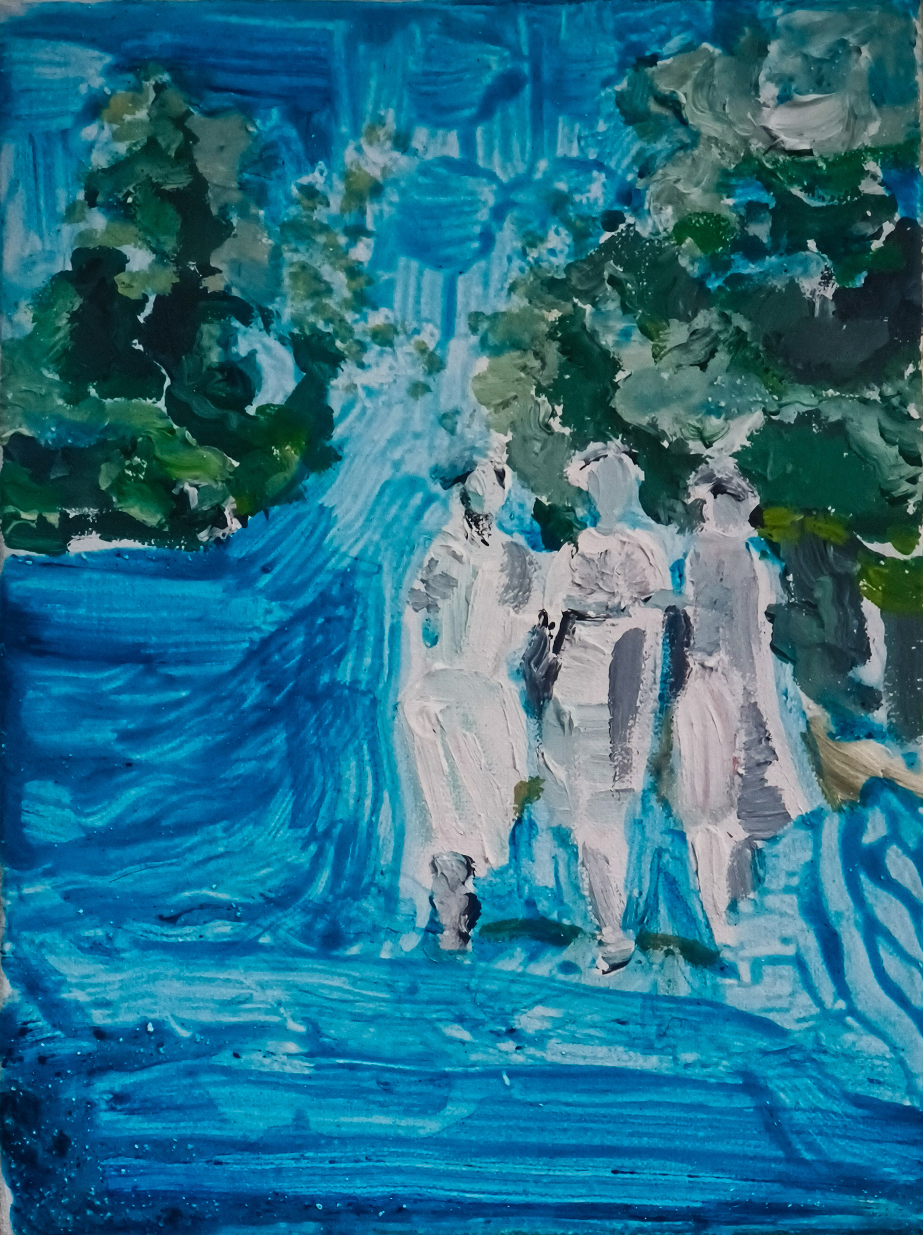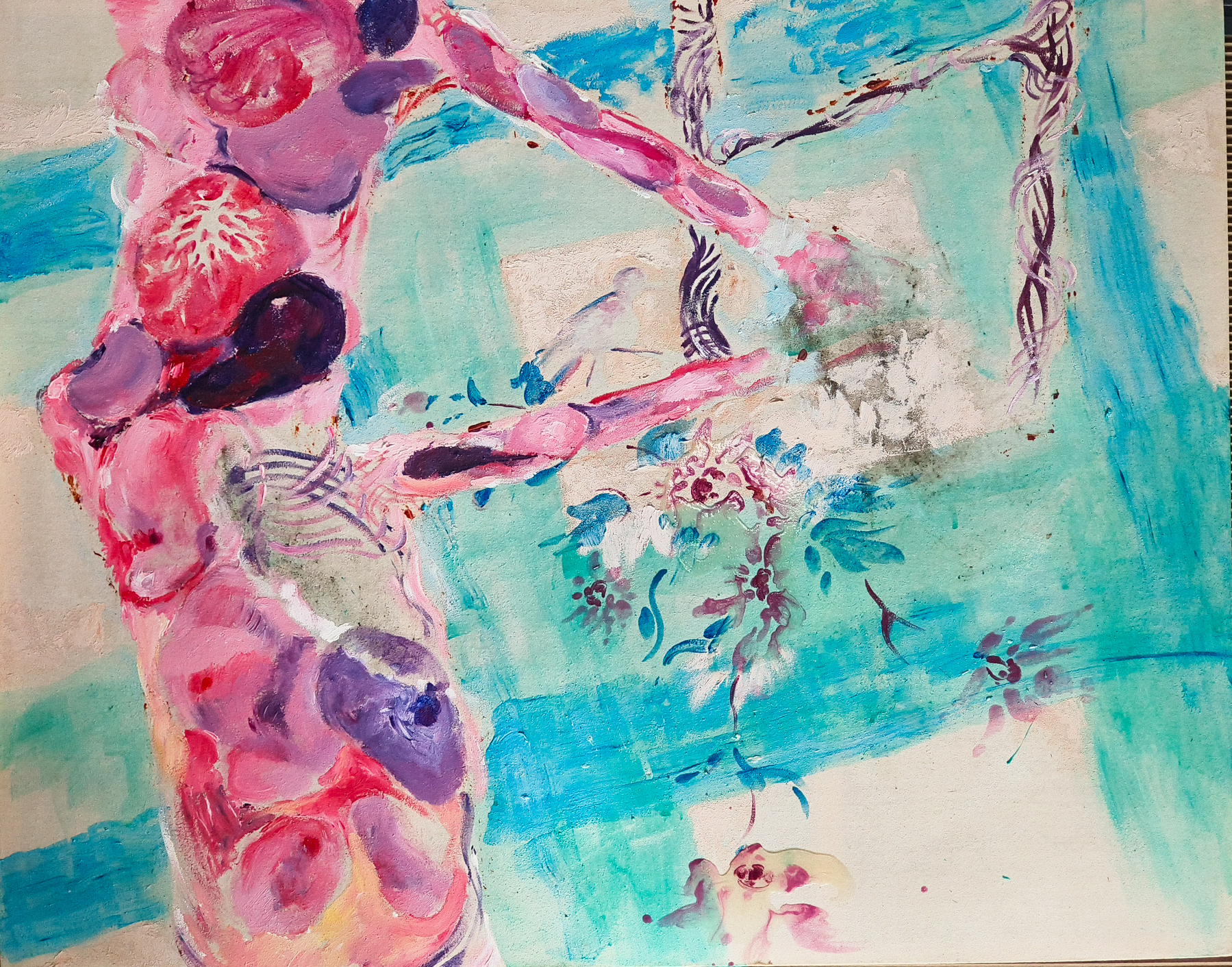 I use paintings as open fields where memories, objects and bodies encounter each other. As I move from one painting to another, secrets show their forms, friends stand by myside, obscure feelings find their words. Yes. I keep a written journal between paintings. As I do not have a separate studio but a guest room, the journal is my studio.